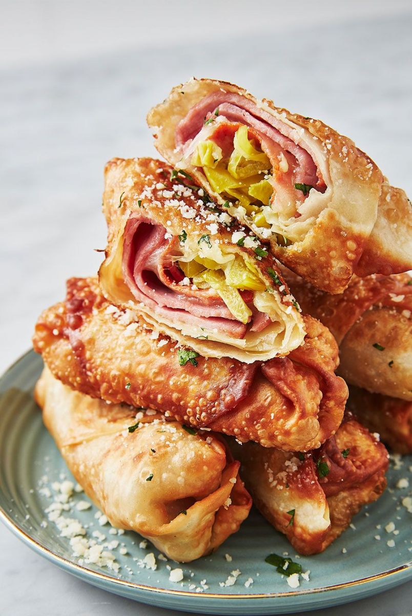 Поставете върху чист плот корите , необходими ви за яйчените ролца.Започнете да редите отгоре слайс шунка, върху нея няколко слайса пеперони и моцарела.Започнете да навивате до получаване на рулце, напръскайте с няколко капки вода, за да омекнат корите и поръсете с пармезан.Печете на 200 градуса до златисто (за около 12 минути). Сервирайте със сос по избор.