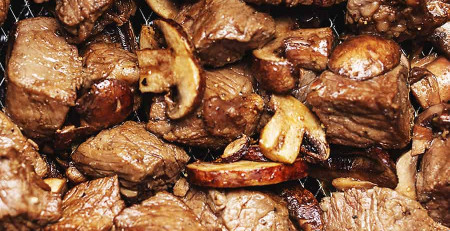 Необходими продукти : 1 ч.л. сол1/2 ч.л. чесън на прах1/4 ч.л. черен пипер2 с.л. сос Уорчестър 2 с.л. масло от авокато (може и обикновена мазнина)50 гр. гъби , нарязаниСвински пържоли , филе, нарязани на кубчет...