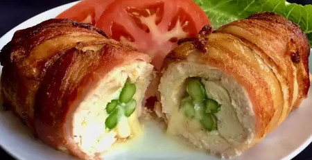 Пълнени пилешки гърди обвити с бекон приготвени в Air Fryer