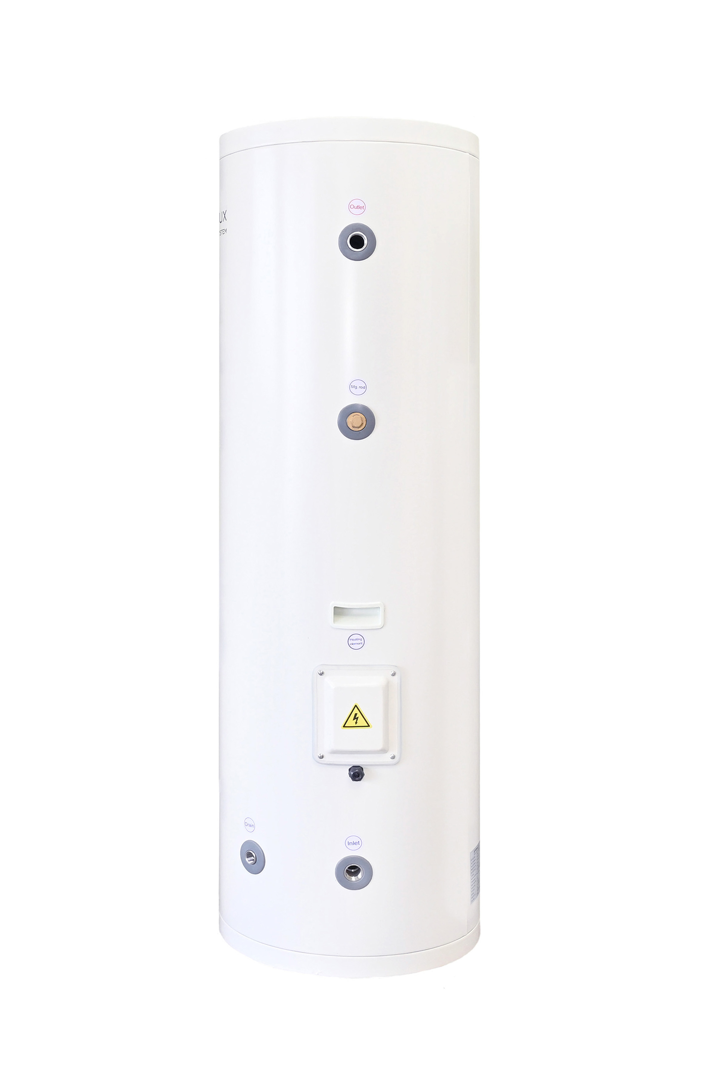 Бойлерът с увеличена серпентина на Terma Lux се доставя с ВГРАДЕН 3 KW нагревател.