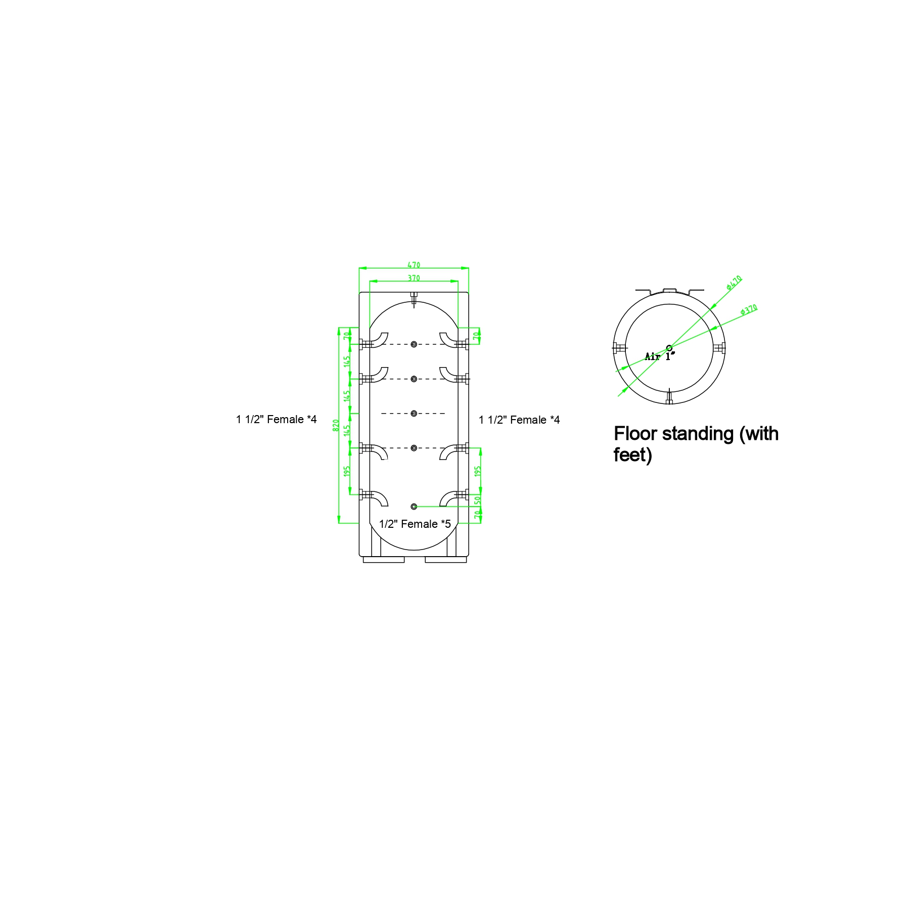 Чрез множество технологични отвори (муфи) буферният съд предлага редица удобни начини за свързване и може да бъде разположен на всяко място. Монтажът може да бъде стенен или подов . В него няма вградени серпентини.