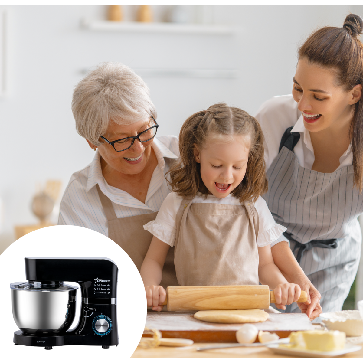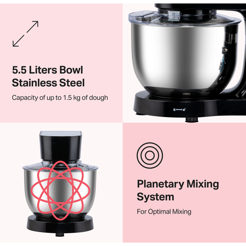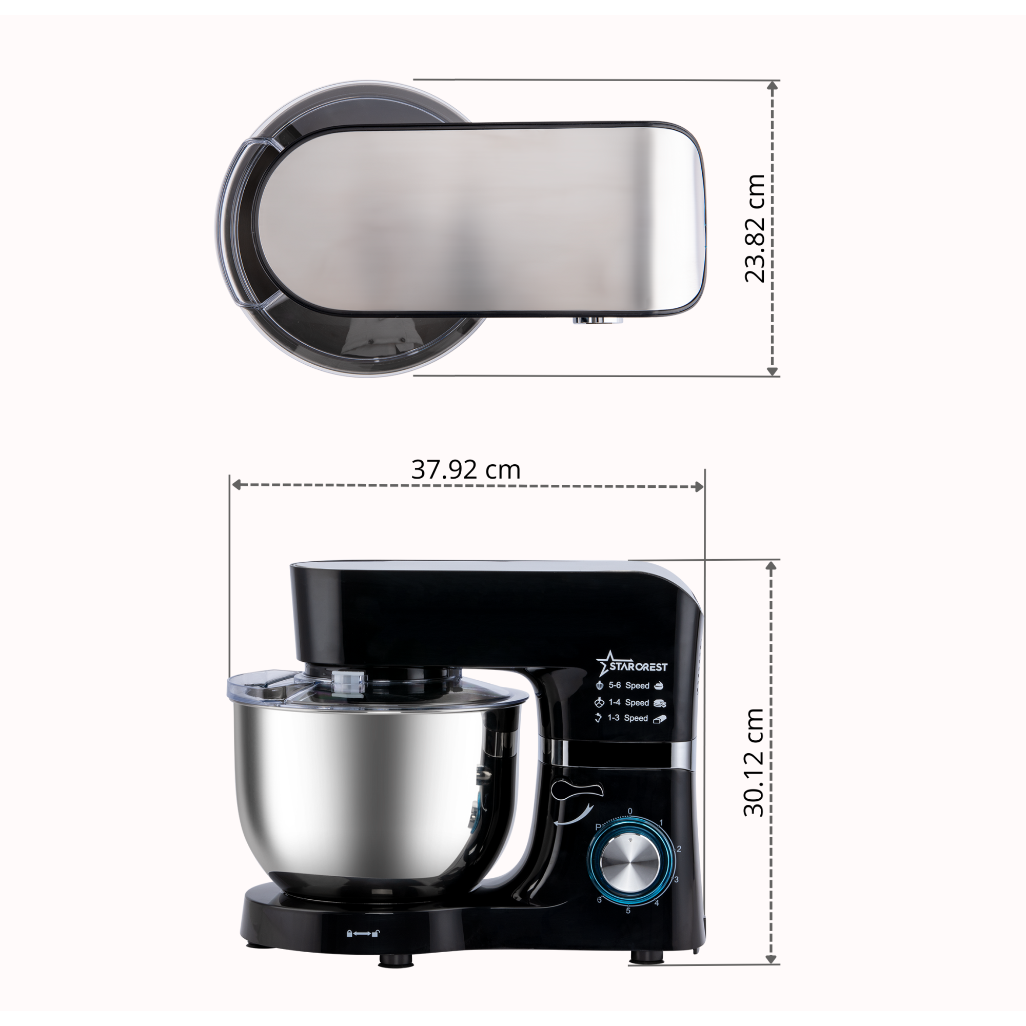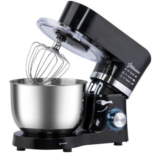 Планетарен миксер STARCREST SKM-1500 BLACK, 1500W, Купа 5.5 L Inox