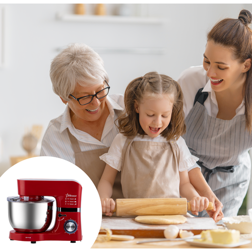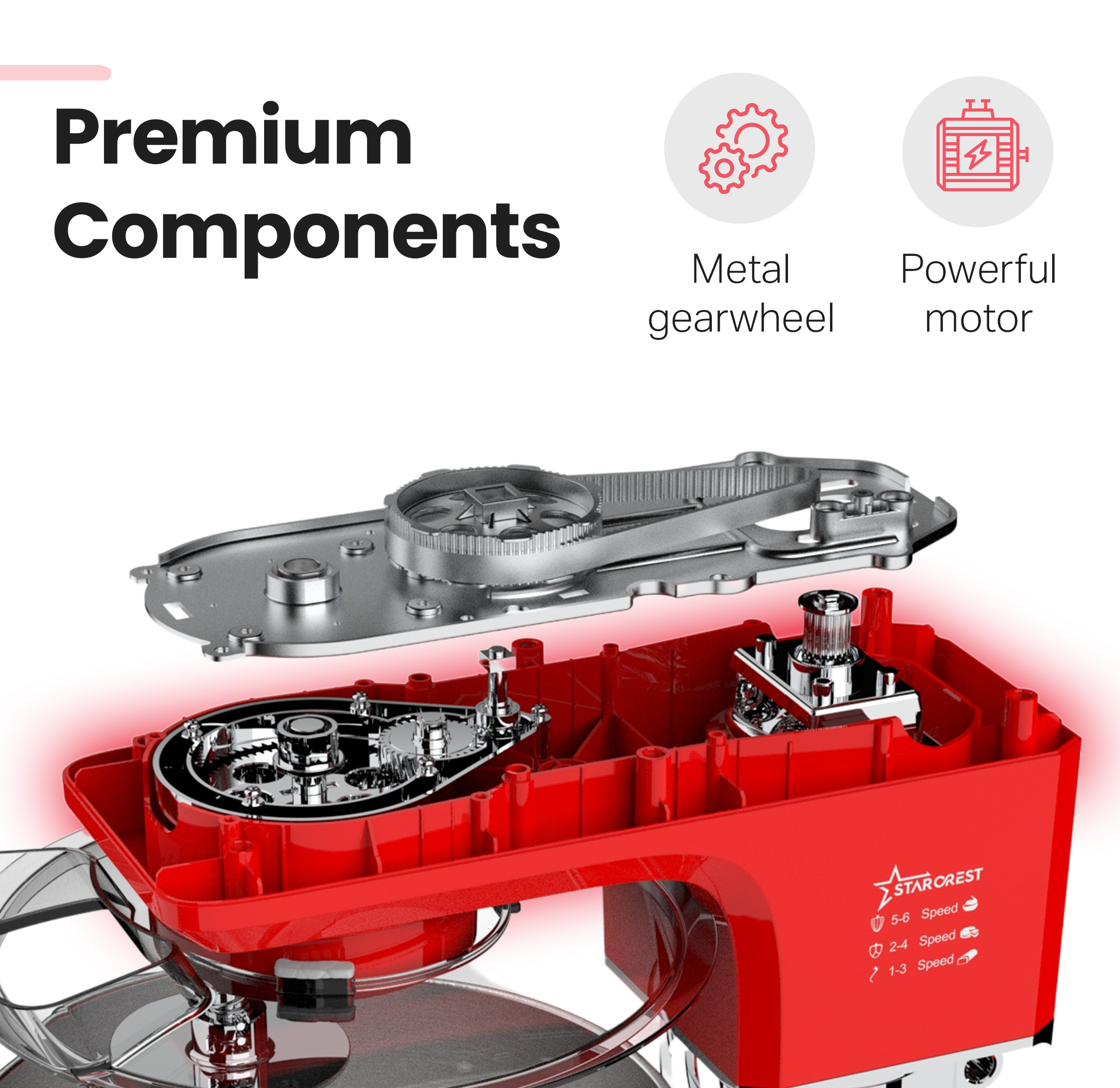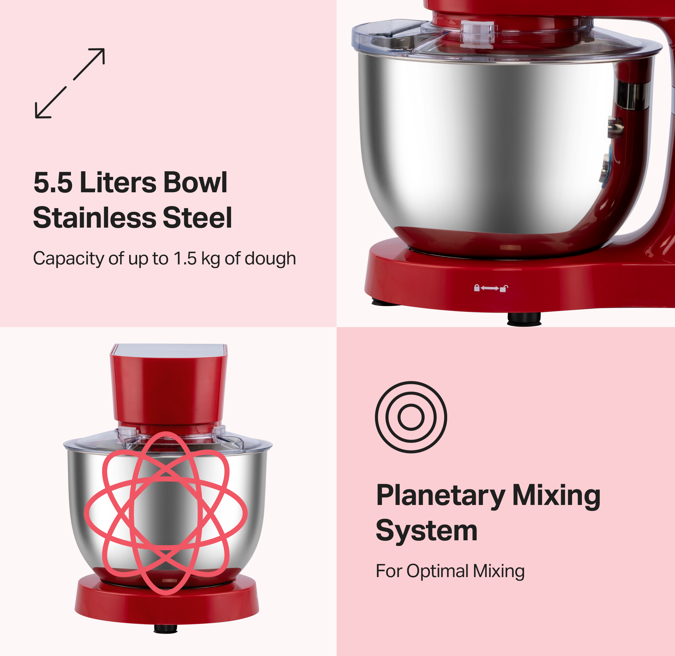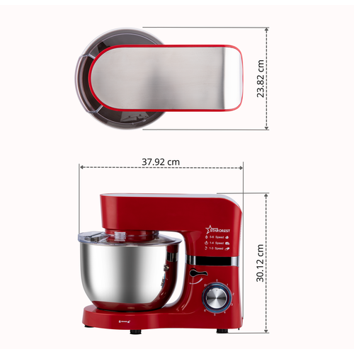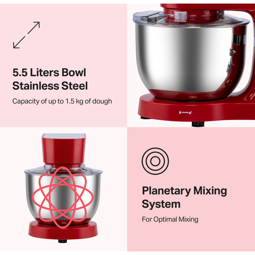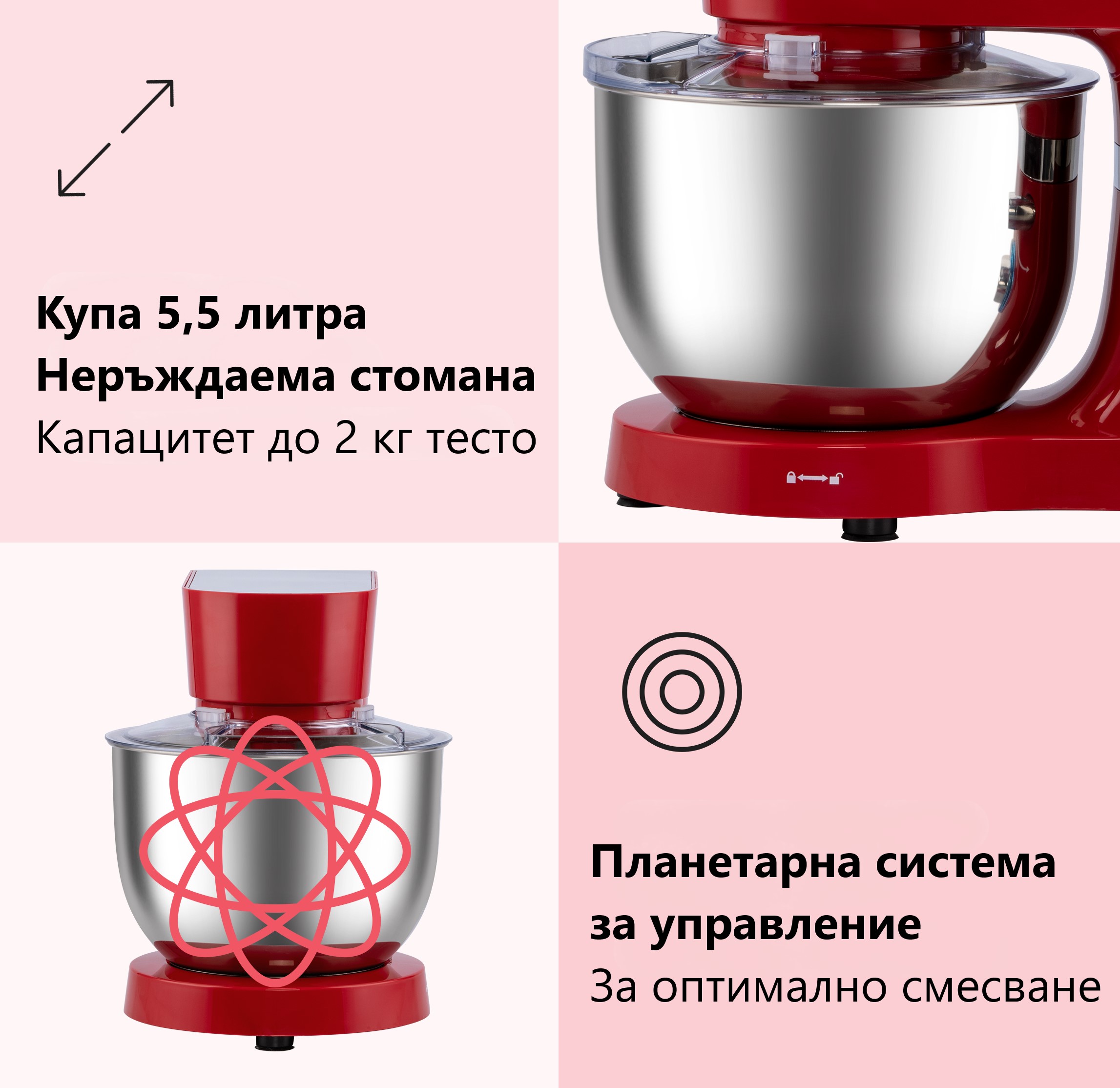 Планетарен миксер STARCREST SKM-1500 RED, 1500W, Купа 5.5 L Inox